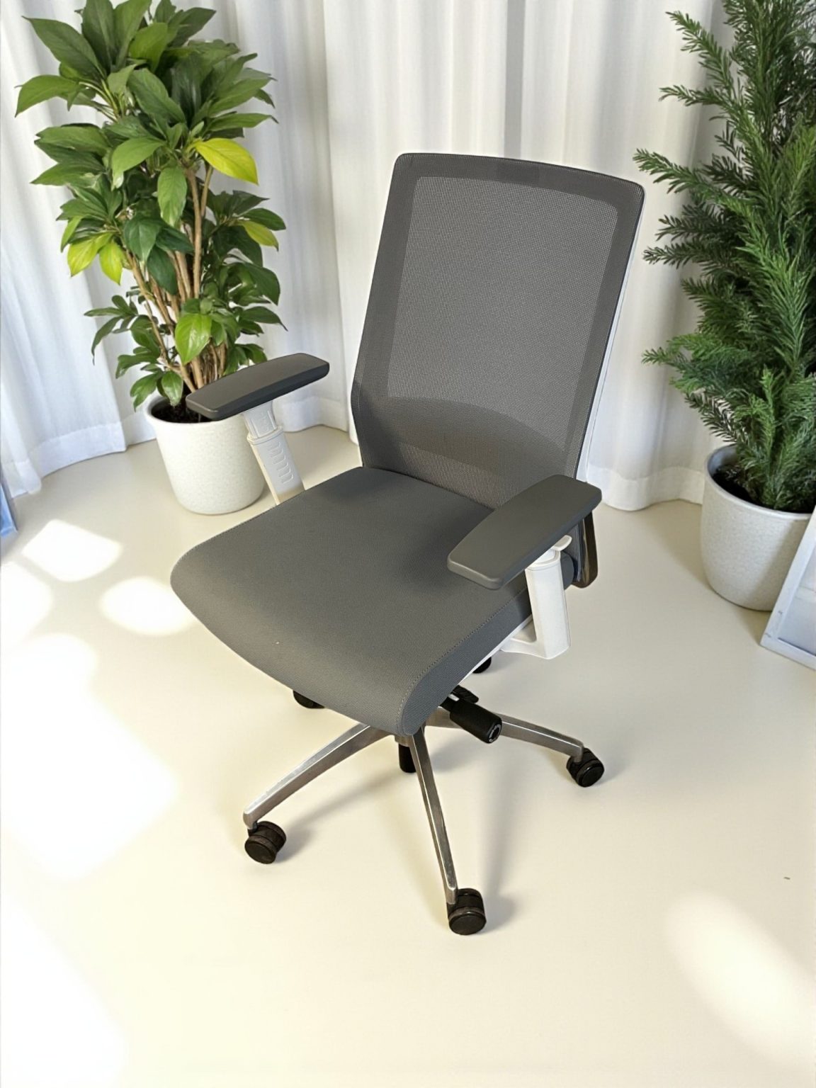 - Mécanisme synchrone : Le dossier et l’assise se déplacent en même temps, en gardant un angle fixe entre eux, ce qui permet de maintenir une position ergonomique