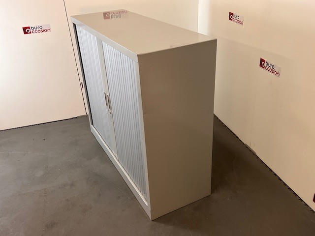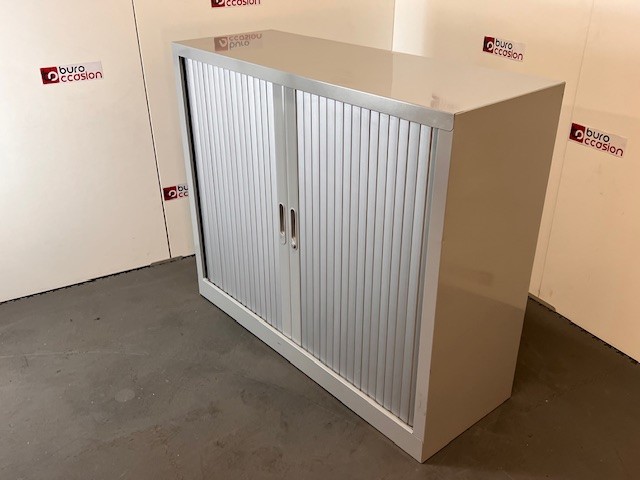 Cette armoire est équipée de rideaux métalliques coulissants coloris aluminium, offrant un gain de place considérable par rapport aux portes battantes. Vous pouvez ainsi accéder facilement à vos documents, même dans les espaces restreints.