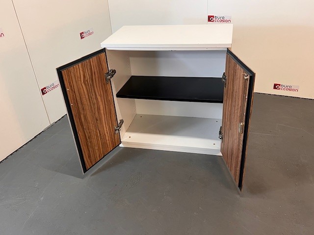 Cette armoire compacte mais fonctionnelle est parfaite pour optimiser l’espace dans les bureaux, salles de réunion ou open spaces. Sa porte battante Zebrano apporte une touche moderne et raffinée, tandis que son dessus blanc lumineux s’intègre facilement à tous les styles de décoration professionnelle.