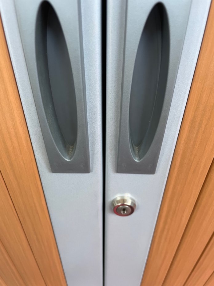 Le coffre en métal aluminium assure une excellente solidité ainsi qu’une longévité remarquable, même en cas d’usage intensif. Le rideau coloris hêtre, quant à lui, apporte une touche chaleureuse et naturelle, adoucissant l’aspect industriel du métal. Cette combinaison subtile entre le métal et le bois crée une esthétique professionnelle, sobre et accueillante, qui s’intègre parfaitement dans tout type d’aménagement de bureau. Cette armoire rideau métallique occasion associe ainsi élégance et résistance pour répondre à vos besoins de rangement quotidien.