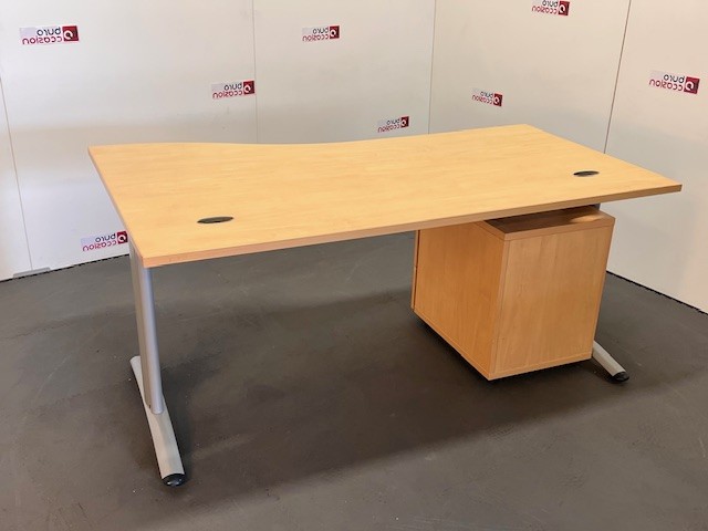 Bureau d’angle professionnel d’occasion 160 cm – Marque Clen – Coloris Sycomore 🌿