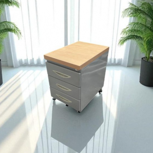 Caisson mobile occasion ht60 x l43.5 x p66 / 2 tiroirs plats + 1 tiroir à dossiers suspendus mélaminé coloris poirier sans clef
