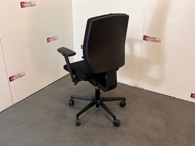 L’assise et le dossier en tissu noir résistant offrent un excellent compromis entre confort et durabilité. Le tissu respirant permet une utilisation prolongée sans inconfort, même lors des journées de travail intensives.