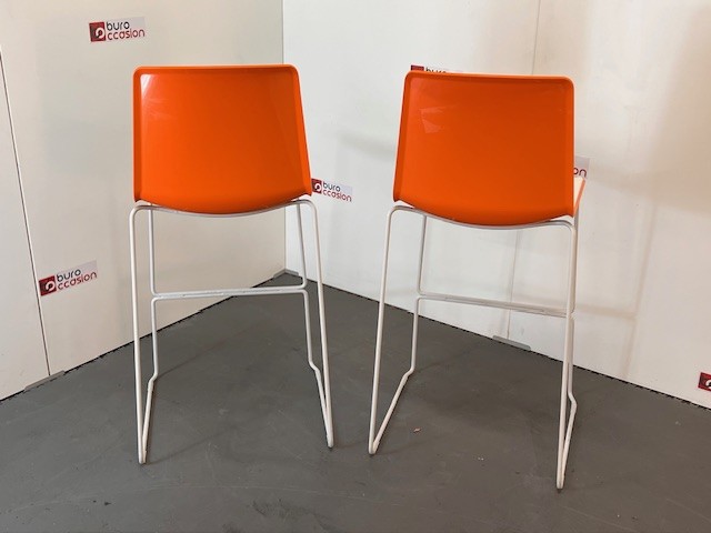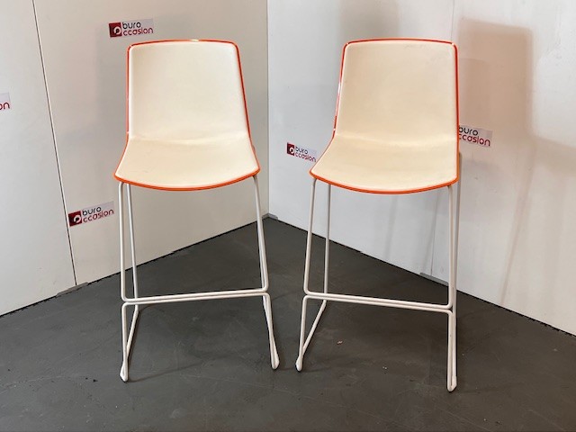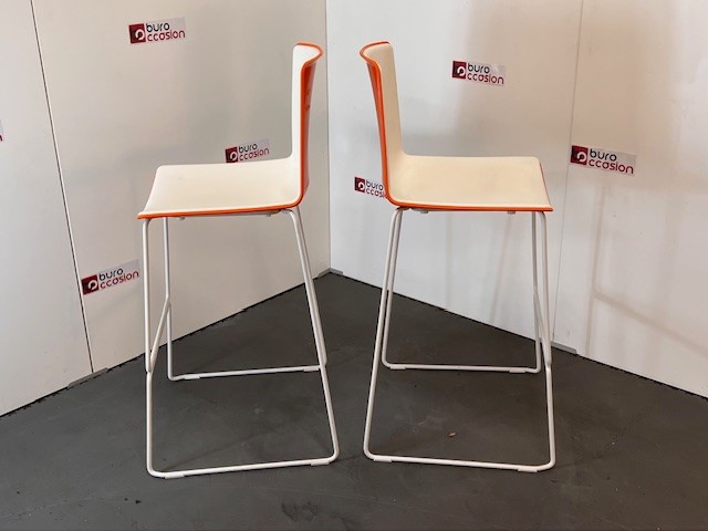 Ces tabourets se distinguent par leur coque bicolore : une assise blanche élégante associée à un dossier orange vif, parfait pour insuffler de l’énergie à vos bureaux. Le dossier haut offre un excellent maintien du dos, favorisant une posture confortable même lors d’une utilisation prolongée.