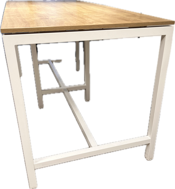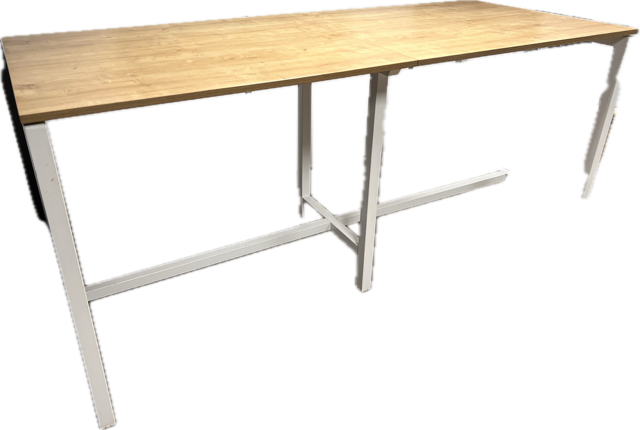 Mange-debout professionnel 240x100 cm – Plateau chêne canadien & pieds métal blancs 🤍🌳